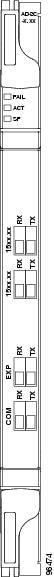 OSC-CSM カードには、前面プレートに 3 セットの光ポートと 1 つのイーサネット ポートがあります。このカードは、スロット 1~6 および 12~17 で動作します。 |