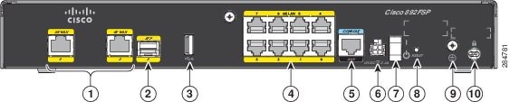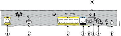 図 1-3 に、Cisco 812 ISR の I/O 側を示します。
