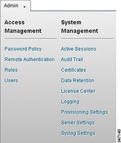 すべてのユーザ管理アクションは、[Admin] >[Access Management] メニューによりアクセスします([Admin] メニュー)。