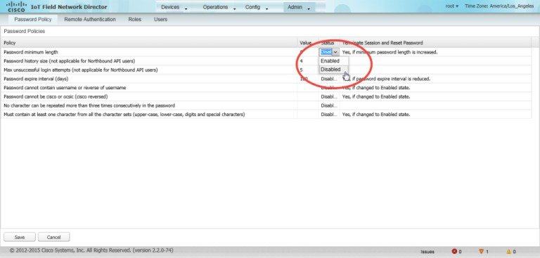(注) IoT FND で設定したパスワード ポリシーは、ローカル ユーザにのみ適用され、リモートの Active Directory(AD)ユーザには適用されません。AD ユーザに対するパスワード ポリシーは、AD 管理者によって決定、適用されます。