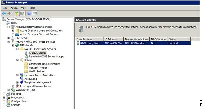 RADIUS クライアントのエントリが、RADIUS クライアントとサーバの下に表示されます。