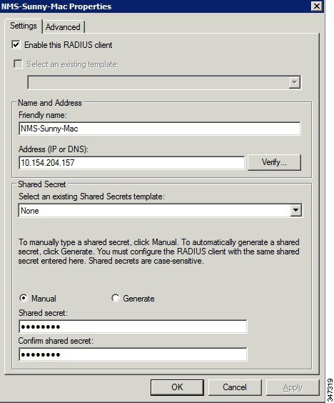 IoT FND サーバのフレンドリ名と IP アドレスまたは DNS 名を提供し、IoT FND が RADIUS サーバへの接続に使用する共有秘密を設定します。