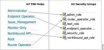 ヒント:AD では、ユーザは複数の IoT FND ロールに割り当てられたり、複数のセキュリティ グループに属したりすることはできません。複数のロールからユーザ グループにアクセス許可を割り当てるには、必要ななアクセス許可のある新しい IoT FND ロールを作成し、対応する AD セキュリティ グループを作成します。この新しいグループのユーザはその後、このロールによって許可されているタスクを実行できます。