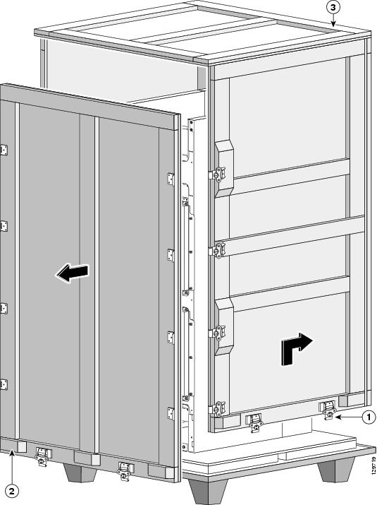 この作業の完了後、出荷用パレットをシャーシから取り外します。詳細は、「シャーシ出荷用パレットの取り外し」を参照してください。