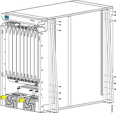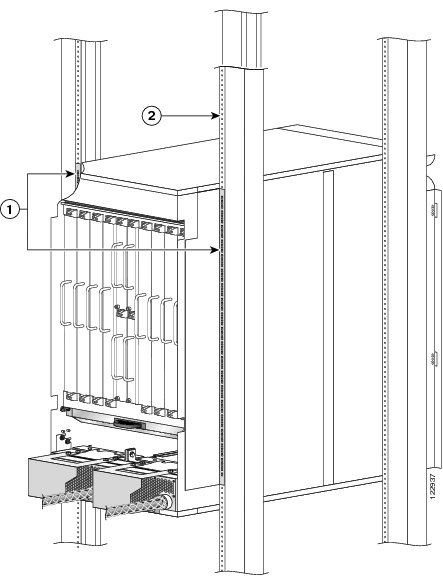 ラック上:4 つのラック垂直取り付けブラケット(ラックの製造元から提供されます)。ラックの取り付けに関する仕様については、『 Cisco CRS-1 Carrier Routing System 8-Slot Line Card Chassis Site Planning Guide 』の Chapter 3 「Equipment Rack Specifications」を参照してください。さらに詳細な情報については、ラックの製造元にお問い合わせください。