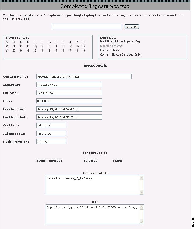 コンテンツ オブジェクトの詳細を表示するには、コンテンツの名前をクリックします。[Ingest Details] が表示されます(図 4-6)。