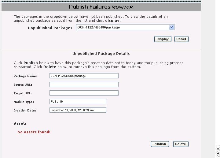 [Monitor] > [Publish Failures] の順に選択します。[Publish Failures] ページが表示されます。