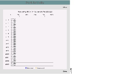 このサーバの各ポートで直近の 2 秒間に発生した送信および受信アクティビティの平均を表示するには、[Graph Ports] をクリックします。図 4-16 に、[Port Activity] グラフの例を示します。
