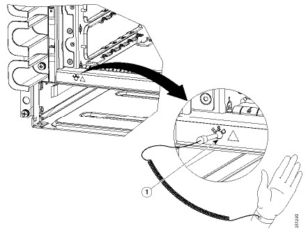 図 1-4 静電気防止用リスト ストラップの Cisco ASR 9904 ルータ シャーシへの接続