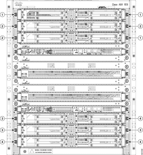 すべての初期 Cisco ASR 1000 シリーズ ESP は共通の高度にプログラム可能なネットワーク Cisco QuantumFlow Processor(パケット処理)に基づいています。Cisco ASR 1013 ルータのスロットは、回転ガイドピンを使用したキーによって、プラグイン カードが動作するスロットだけに挿入を完了できるようになっています。このキー機構によって、カードが許可されていないスロットでミッドプレーンに接触するのを防ぎます。