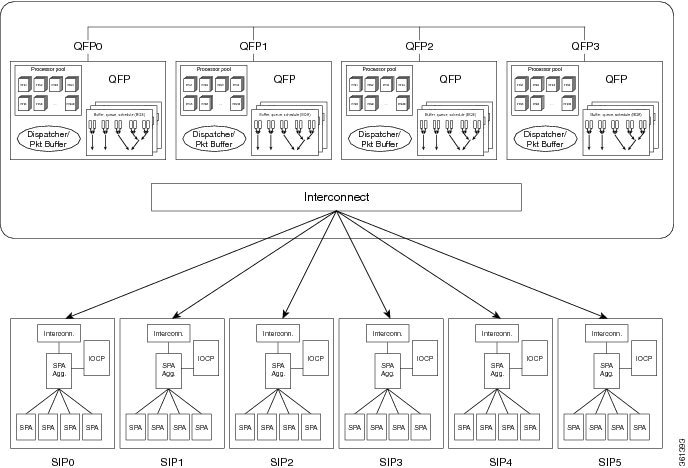 出力 QoS を持つインターフェイスとセッションは、スケジュールとキューを、特定のスロット用の QFP-3rd-Gen ASIC に存在させます。QFP-3rd-Gen ASIC につき 29000 のスケジュールと 116000 のキューという制限があるため、スケジュールとキューをシステムで最大限に拡張するには、SIP と SPA を正しい順序で配置することで複数の QFP-3rd-Gen ASIC をターゲットとする必要があります。