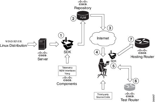 開発者は、IOS XR を実行するホスティング ルータで再構築されたアプリケーションをホストします。