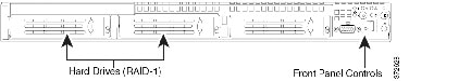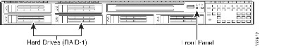 シャーシの前面には、ハード ドライブおよび前面パネル コントロールがあります。