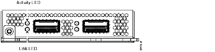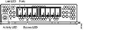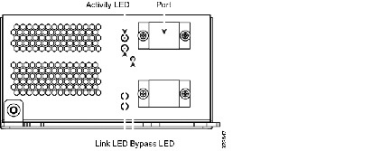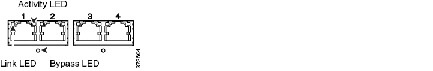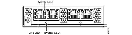 クワッドポート 10GBASE(MMSR または SMLR)光ファイバの非バイパス NetMod には、4 つの光ファイバ ポートと、リンクおよびアクティビティの LED があります。
