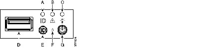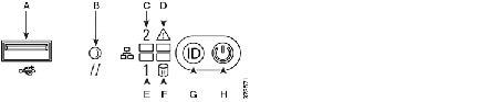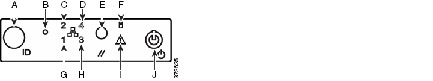 次の図に、DC750 の前面パネルのコントロールと LED を示します。ハードディスク ドライブとシステムのステータス アイコン、NIC の番号(1、2、3、4)とアクティビティ ステータス、および電源ボタンも LED です。