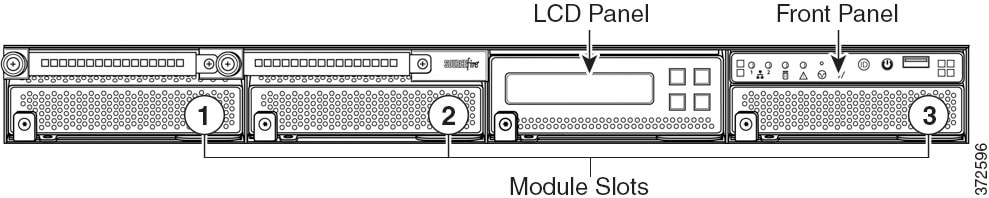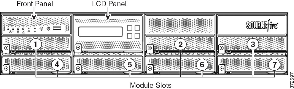 次のシャーシ前面図に、センシング インターフェイスを含むモジュール スロットの位置を示します。