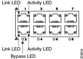 図 3-2 8 ポート 1000BASE-T 設定可能バイパス インターフェイス(銅線)