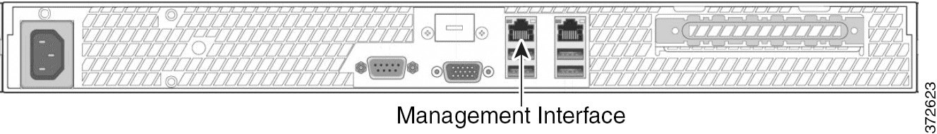 DC3500 を 1 U アプライアンスとして使用できます。次のシャーシ背面図に、管理インターフェイスの位置を示します。