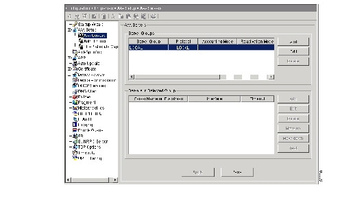 AAA Servers 領域内のフィールドは、Server Groups 領域と Servers In The Selected Group 領域の 2 つの領域に分けられます。 Server Groups 領域では、セキュリティ アプライアンスが各グループに表示されたサーバと通信を行うのために使用する AAA サーバ グループとプロトコルを設定できます。