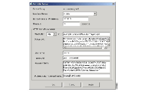 Add AAA Server ダイアログボックスが表示されます。図8-12 は、このダイアログボックスをステップ 8 からステップ 16 に記載された値を入力した状態です。