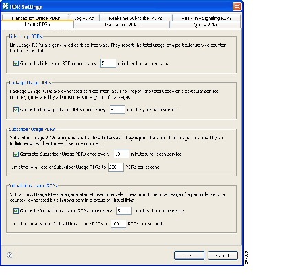 選択したタイプの Usage RDR の生成をイネーブルにするには、該当する [Generate Usage RDRs] チェックボックスをオンにします。