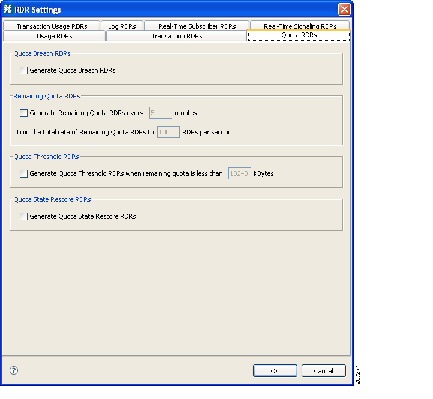 Quota Threshold RDR の生成をイネーブルにするには、[Generate Quota Threshold RDRs] チェックボックスをオンにします。