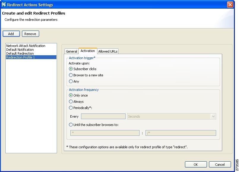 サブスクライバ通知:ブラウジング セッションをキャプティブ ポータルにリダイレクトし、悪質アクティビティについて関連サブスクライバに通知します。ネットワーク攻撃に関するサブスクライバ通知を設定するには、「サブスクライバ通知の管理」を参照してください。