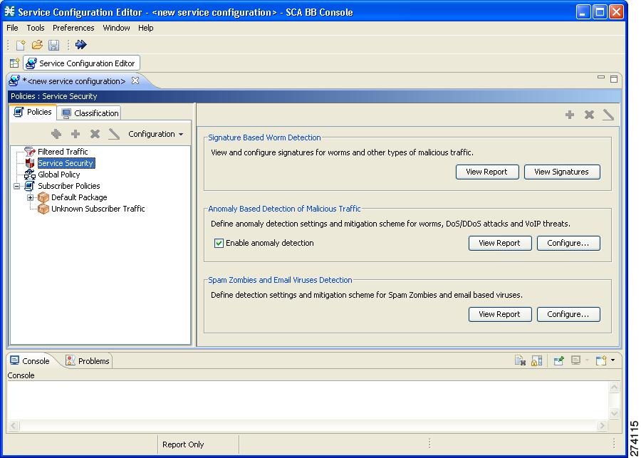 注意 悪質トラフィックの異常ベース検出が有効の場合、プラットフォームにサービス コンフィギュレーションを適用すると、Service Control Engine(SCE)プラットフォームで設定されているものの、インターフェイス、アクセス マップ、または Simple Network Management Protocol(SNMP; 簡易ネットワーク管理プロトコル)コミュニティ ストリングなどいずれにも適用されていない任意の Access Control List(ACL; アクセス コントロール リスト)が削除されることがあります。