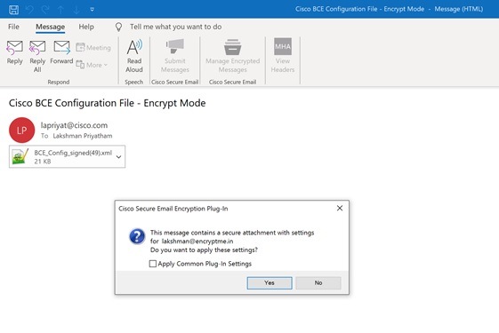 このオプションを選択すると、セキュアメッセージに [Remember envelope key] チェックボックスが表示されます。