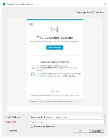 このオプションを選択すると、セキュアメッセージに [Remember me] チェックボックスが表示されます。