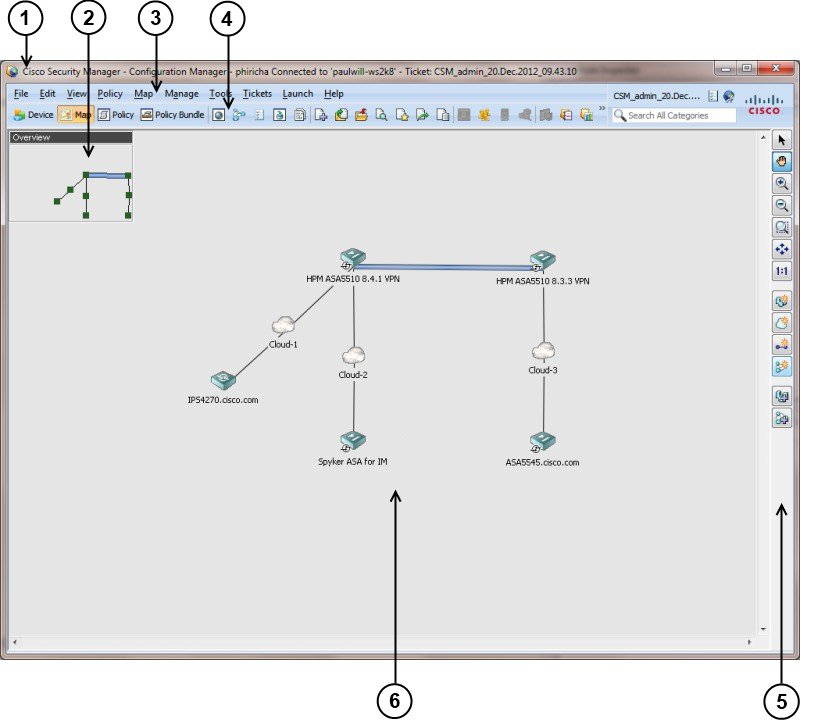 [デバイスマネージャの統合(Device Manager Integration)]:Cisco Security Manager には、Adaptive Security Device Manager(ASDM)など、さまざまなデバイスマネージャの読み取り専用コピーが含まれています。これらのツールを使用すると、デバイスステータスの表示はできますが、デバイス設定の変更はできません。詳細については、デバイス マネージャの起動を参照してください。