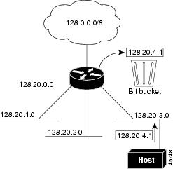 図 41-3 では、ネットワーク 128.20.0.0 のルータはサブネット 128.20.1.0、128.20.2.0、128.20.3.0 に接続されています。 ホストがパケットを 128.20.4.1 に送信した場合、ネットワークのデフォルト ルートが存在しないため、ルータはパケットを廃棄します。