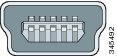 USB コンソール ポートでは、USB タイプ A/5 ピン ミニタイプ B ケーブルを使用します。USB タイプ A から USB Mini タイプ B へのケーブルは提供されません。このケーブルが含まれたアクセサリ キット(部品番号:800-33434)を発注してください。