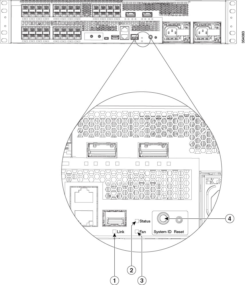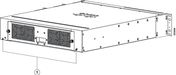 3 注文された電源装置がスイッチに取り付けられています。2 番めの電源装置が注文されていない場合は、ブランク パネルが取り付けられています。