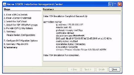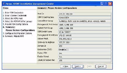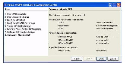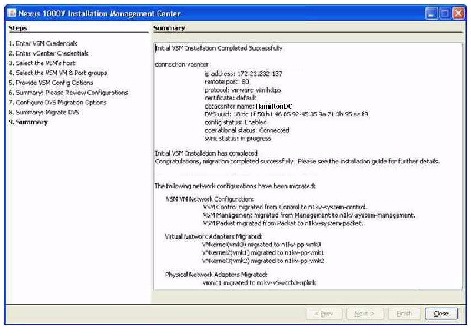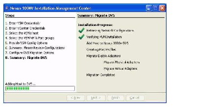 完了した VSM 設定が表示され、ホストとネットワークを新しい DVS に移行するように求められます。