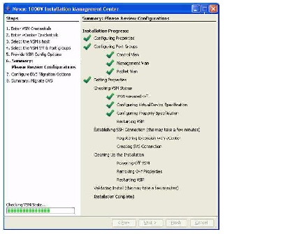 要約画面が開き、VSM 上の設定が完了した進捗状況が表示されます。
