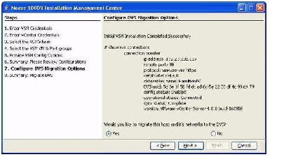 ホストが自動的に新しい DVS に移行されるようにするには [Yes] をクリックし、次の手順に進みます。