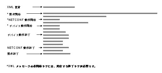 図 1-1 に、NETCONF XML メッセージの内容の各ラインの識別に使用されるタグを示します。