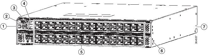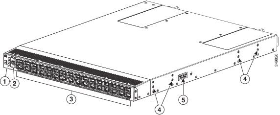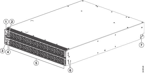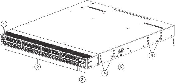 次の図は、シャーシの取り付け時またはそのモジュールの交換時に使用する、シャーシのポート側の機能を示しています。