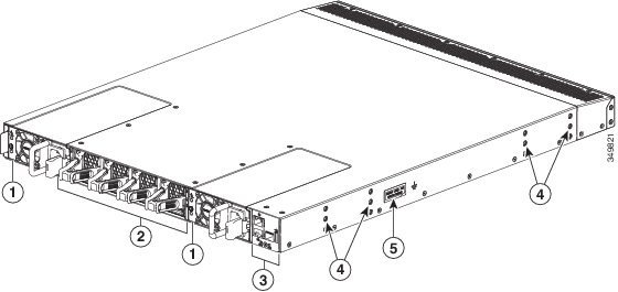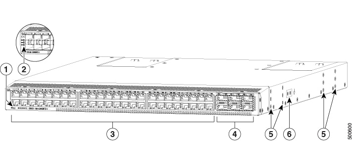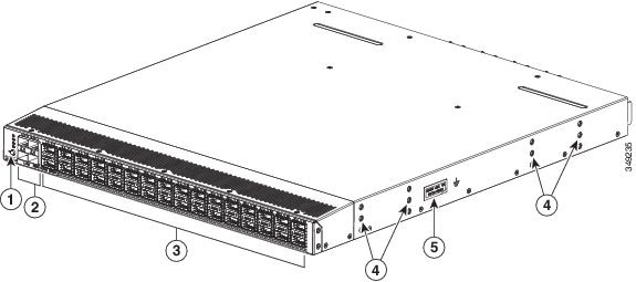 これらのスイッチは、それぞれ 1 個の管理ポート、1 個のコンソールポート、1 個のUSBポートを持ち、ポート側排気とポート側吸気の両方のエアーフロー方式をサポートします。これらのスイッチの動作に必要なのは 1 つの AC または DC 電源ですが、冗長性のためにセカンダリ電源を備えることができます。