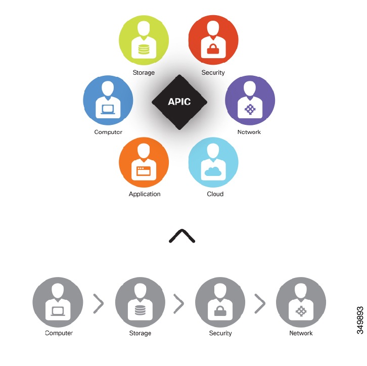 「When(いつ)」は、上記のチームが計画に関与する時期を示します。ファブリックの実装および管理方法に関するポリシーとプロセスを作成する際は、早い段階でさまざまなチームを関与させることをお勧めします。ACI conrefACI のコラボレーション特性によって、ワークフローの高度な並列化を実現できます。これは ACI と従来の処理との主要な相違点です。従来の処理は本質的に逐次的であるため、アプリケーションの開発に長い時間がかかり、問題が発生した場合の平均解決時間も長くなります。