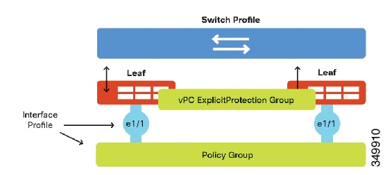 また、スイッチ用のポリシーもあります。たとえば、Application Policy Infrastructure Controller (APIC) GUI および vPC ポリシーで明示的 vPC 保護グループと呼ばれる、vPC ドメインを設定したりします。理想的には、ポリシーを 1 回だけ作成して、ファブリックに新しいデバイスを接続するときにそれを再利用します。ポリシーとオブジェクトを最大限に再利用すると、日常業務が飛躍的に速くなり、大規模な変更が容易になります。