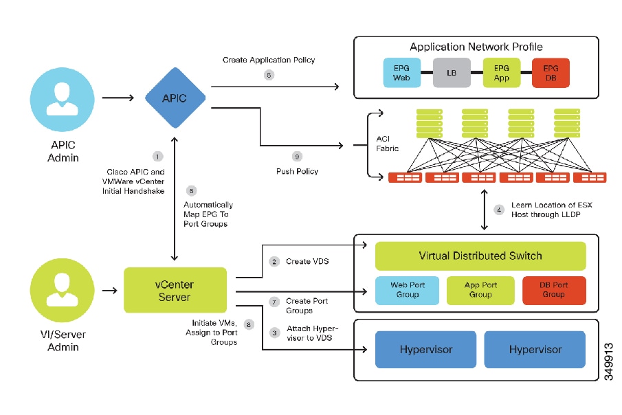 - 複数のテナント間で VMM ドメインを活用する必要がある場合は、1 つの VMM ドメインを作成して、VMware ESXi サーバが接続しているすべてのリーフ ポートに関連付けることができます。