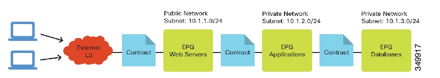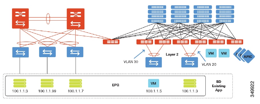 Cisco Application Centric Infrastructure (Cisco ACI) ファブリックにデバイスを接続するために、タグなしトラフィック、802.1Q タグ付きトラフィック、または VXLAN カプセル化を使用できます。ポート単位の VLAN を使用すると、トラフィックが別のポートに着信される場合、同じ VLAN を異なるエンドポイント グループに使用できます。リリース 1.1 より前は、VLAN はリーフ スイッチごとに 1 つのエンドポイント グループのみを関連付けることができました。