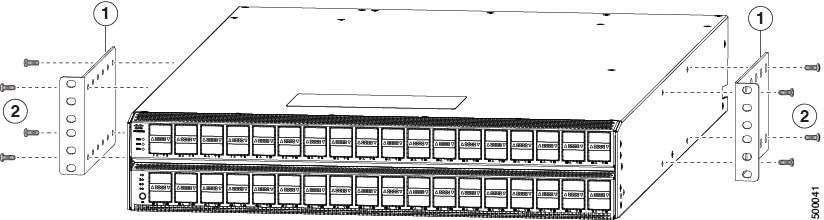 ラックマウント キットを使用すると、スイッチをさまざまな深さのラックに設置できます。ポート接続端またはファンおよび電源モジュールのいずれかに容易にアクセスできるようにスイッチを配置できます。