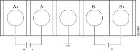 図 3-15 アースを共有している DC 電源 A と電源 B の接続