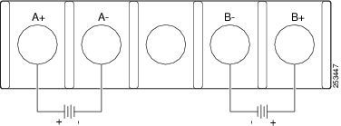 手順 3 DC 入力電源端子を端子ブロックに接続します。図 3-14 または図 3-15 を参照してください。入力導線を端子ブロックに接続する際は、極性を必ず一致(マイナスとマイナス、プラスとプラス)させてください。スイッチのラックがアースされていない場合は、アース線をアース処理された金属ラックに接続するか、またはアースに接続します。