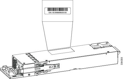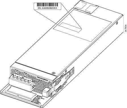電源モジュールについてシスコのテクニカル サポートに連絡する場合は、シリアル番号が必要です。図 3-16 ~ 図 3-20 を参照して、シリアル番号を確認してください。