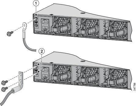 次の手順に従って、単一孔アース ラグまたは二重孔アース ラグをスイッチに取り付けます。設置場所のアース要件に従ってください(ある場合)。