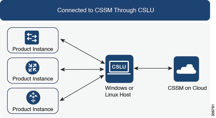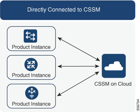 コントローラを介して CSSM に接続:製品インスタンスがコントローラによって管理されている場合、コントローラはスケジュールされた時間に RUM レポートを送信します。